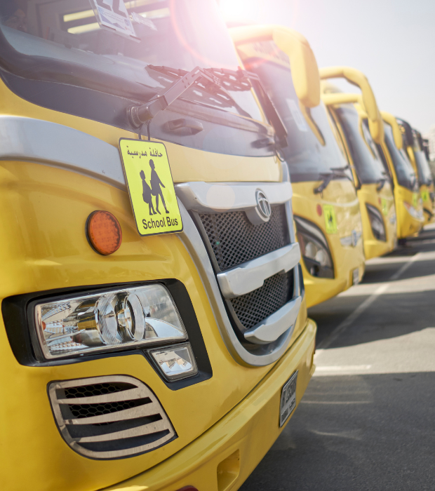 Bright Bus Transport (BBT), which is part of STS Group, provides GEMS Winchester School – Fujairah with exceptional transportation services, bringing over a decade of experience as a trusted partner in the education sector. Renowned for their commitment to safety, reliability, and innovation, STS Group operates an extensive fleet of Smart Buses equipped with advanced technology, including CCTV surveillance, ADAS cameras, and GPS tracking. Each bus also features an RFID system, Child Check Button, and motion sensors, all monitored by their 24/7 Operations Control Centre (OCC). STS Group’s core values—Safe, Timely, Smart—are reflected in their rigorous training programmes for bus drivers and guardians, ensuring adherence to road safety management and safe driving practices. Their operations consistently exceed regulatory requirements, with a strong focus on maintaining safety and delivering excellence in every aspect of their service.